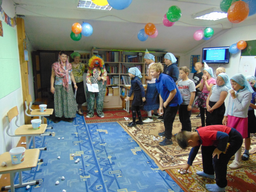 В завершении площадки преподаватели приготовили детям сюрприз: «День именинников», где виновниками торжества были все дети. Встречал детей клоун Тяпа, после знакомства с детьми , клоун предложил водить «Каравай». Затем поздравляли именинников по временам года, так же был проведен конкурс, где ребята рисовали портрет именинника, конкурс «Матрёшек», отгадывали загадки- обманки, а потом дети срезали призы с завязанными глазами, был конкурс кидание «камней», поедание груши. После всех конкурсов клоун Тяпа пригласил всех за стол, пить час с тортом. Пока ребята пили час, преподаватели провели конкурс «фанты», где ребята вытягивали различные задания и показывали их. Каждый именинник получил сладкий подарок.