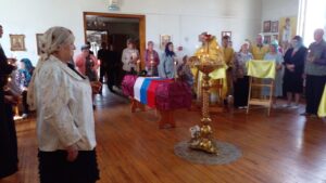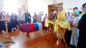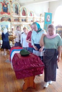 В воскресный день 29 июня, после Литургии состоялось отпевание нашего земляка — воина, погибшего на СВО — Кузнецова Иоанна. Родственники погибшего сделали именно так, как подобает: отпевание в храме, потом только траурная церемония у центра культуры и спорта.